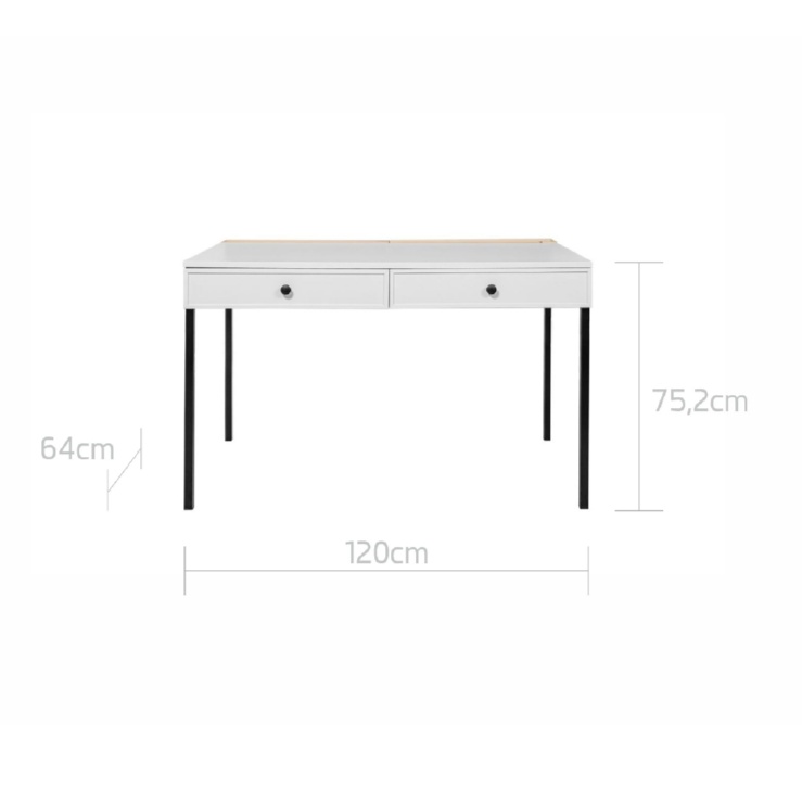 Eleganță, modestie, detalii. Colecție de mobilier pentru copii minimalist, echilibrat și simplu. Formă geometrică îndrăzneață, îmbogățită cu detalii metalice elegante. Părți mobile ascunse, panouri de birou fonoabsorbante oferă confortul și siguranța potrivite. O linie concepută conform principiilor filosofiei holistice de dezvoltare Montesori. Caracteristici produs: - 2 sertare spațioase pe șine, care oferă acces facil la rechizitele școlare preferate ale copilului dumneavoastră - panou decorativ fonoabsorbant care reduce zgomotul și ajută la creșterea concentrării copilului, cu opțiunea de a atașa diverse imagini sau fotografii și de a preveni căderea obiectelor de pe birou (panoul este o caracteristică opțională care poate fi achiziționată separat) - două compartimente de depozitare ușor accesibile încorporate, cu capace din lemn, pe spatele biroului - ideale pentru depozitarea obiectelor mici sau pentru a fi utilizate ca organizator de cabluri și fire pentru a menține ordinea pe birou și în cameră - echipat cu un orificiu pentru rutarea cablurilor pentru a evita aglomerația inutilă pe birou - partea din spate a biroului, finisată cu grijă, permite amplasarea oriunde în cameră, permițându-vă să îl personalizați în funcție de nevoile dumneavoastră individuale - produs în conformitate cu standardele și reglementările europene de siguranță, asigurând calitatea și durabilitatea. Dimensiuni (cm): înălțime: 75,2 adâncime: 64 lățime: 120 Design și finisaje: - placă laminată de înaltă calitate, rezistentă la deteriorare și umezeală, ușor de curățat, - panoul EcoPET ecologic, inodor și netoxic - lemn de fag și pin lăcuit – picioare metalice Lacurile utilizate în procesul de producție sunt sigure pentru copii și certificate conform standardului EN71/3 Culoare: -alb/ negru/ fag Instrucțiuni de utilizare: Mobila trebuie ștersă cu o cârpă moale din bumbac, umezită cu apă sau cu un produs de îngrijire a mobilei. Asamblare: Mobila este livrată în colete pentru auto-asamblare. Instrucțiuni detaliate de asamblare sunt furnizate în colete împreună cu echipamentul.