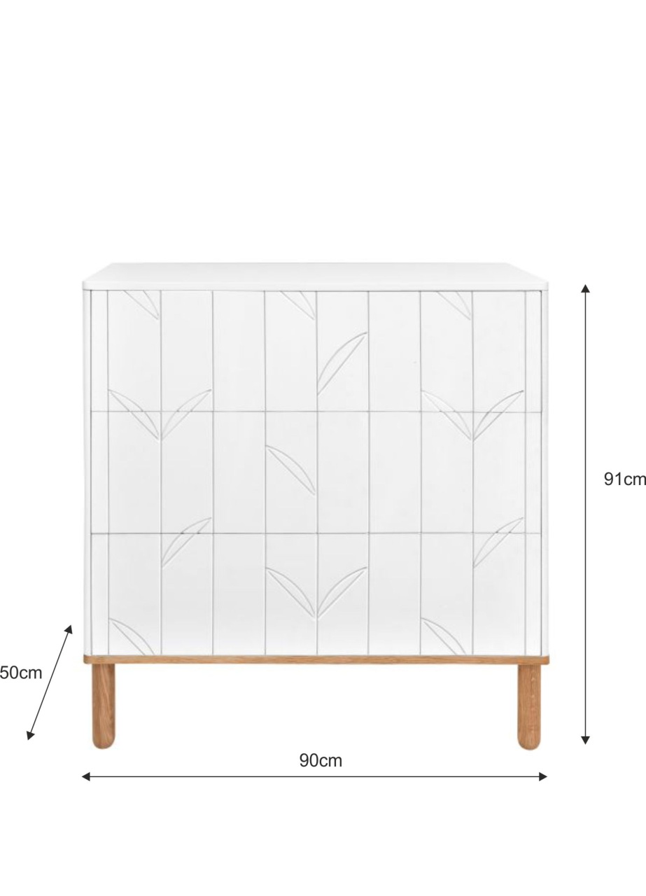 Bellamy Comoda Toteme botanic alb/stejar cu 3 sertare L90 cm