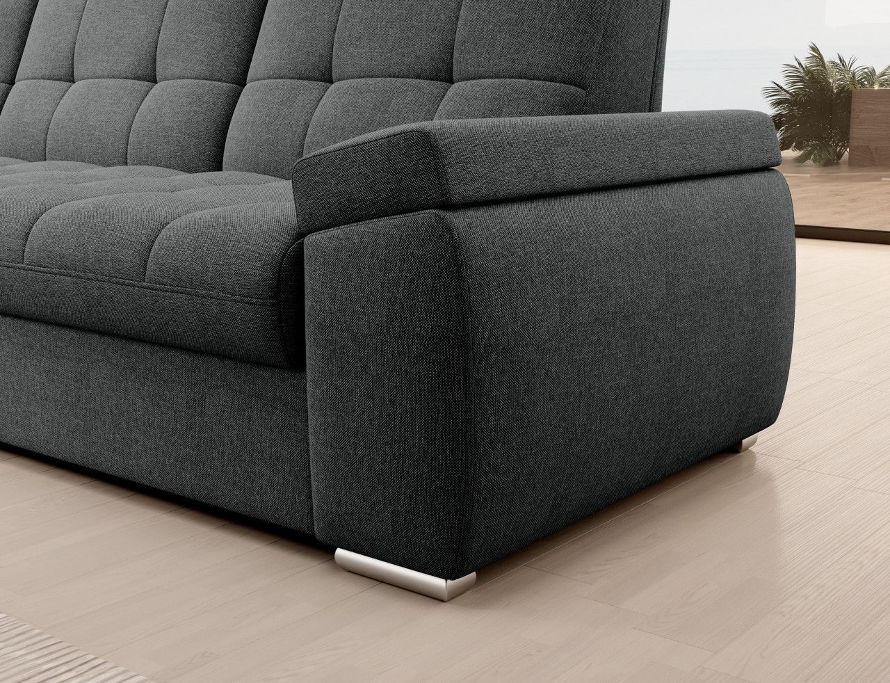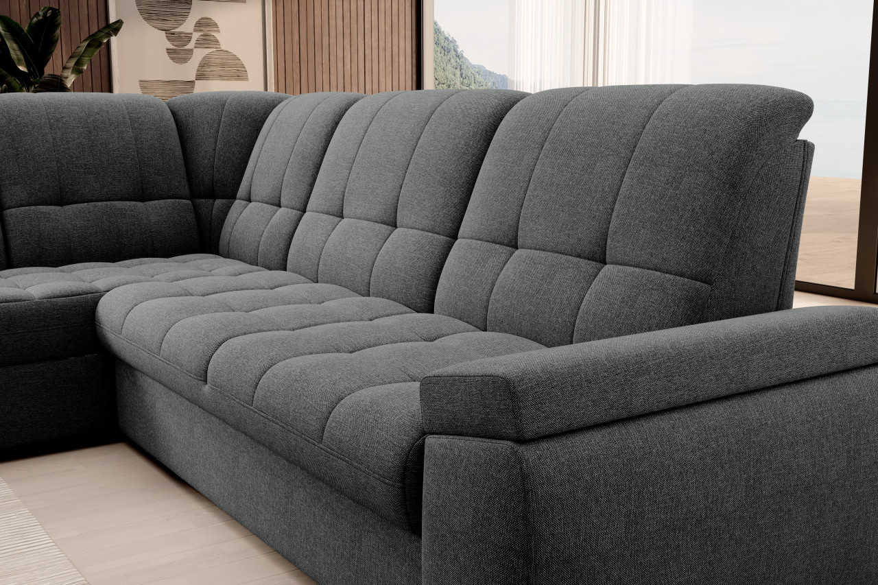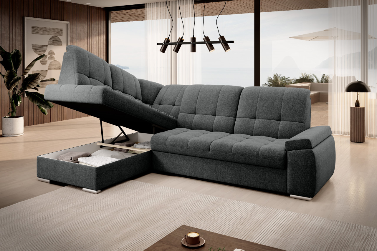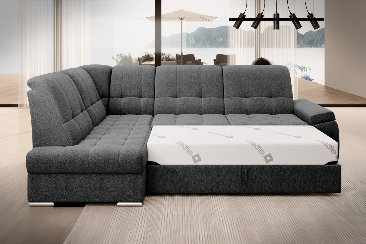 Sado este un colțar practic și confortabil, cu dimensiunile de 272x192x95 cm, gândit pentru relaxare zilnică - fie că urmărești un film, fie că citești o carte. Confortul este asigurat de spătarul profilat, precum și de cotierele comode. Modelul dispune de o funcție de dormit cu o suprafață de 207x130 cm, ce poate fi extinsă rapid și ușor datorită mecanismului tip „delfin”. În plus, lada de depozitare integrată în șezlong oferă un spațiu practic pentru a păstra lenjeria de pat. Dimensiuni: Lungime: 272 cm Adâncime: 192 cm Înălțimea cu perne: 95 cm Adâncime așezutului: 60 cm Înălțimea șezutului: 45 cm Funcție de dormit: 207x130 cm Produsul nu este montat, montarea este rapidă și ușoară. Produsul este personalizabil, culoarea și materialul se aleg pe baza paletarelor la cererea clientului. Prețul poate suferi modificări în funcție de grupa de material aleasă.