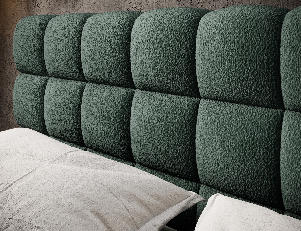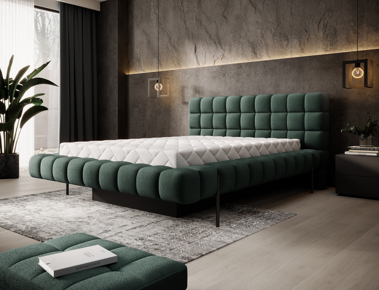 Patul Magentta reprezintă o combinație de design modern, funcționalitate și confort deosebit. Datorită spatelui tapițat, patul are un aspect extrem de elegant și adaugă o notă de căldură oricărui dormitor. Structura solidă și spătarul umplut cu spumă T2130 oferă un suport excelent și confort atât pentru somn, cât și pentru relaxare. Modelul este disponibil în trei dimensiuni: 140 cm, 160 cm și 180 cm, permițând adaptarea acestuia la dimensiunea camerei și la preferințele individuale. Cadru metalic include 36 de lamele care susțin uniform salteaua (se achiziționează separat), sporind durabilitatea construcției și confortul utilizării. Piciorul negru din metal oferă o bază solidă și accentuează caracterul minimalist și modern al patului. Un avantaj suplimentar este lada de depozitare pentru lenjerie, care permite stocarea practică a plapumilor, pernelor sau altor textile, economisind spațiu în cameră. Patul Magentta este alegerea ideală pentru cei care apreciază stilul modern, confortul și soluțiile funcționale. Dimensiuni: Lățimea: 224 Lungimea: 244 cm Înălțimea: 106 Înălțimea șezutului: 44 cm Suprafață de dormit: 180x200 cm Înălțimea picioarelor: 21 cm Recipient pentru depozitarea așternuturilor: 177x140x29cm Salteaua NU este inclusă! Produsul nu este montat, montarea este rapidă și ușoară. Produsul este personalizabil, culoarea și materialul se aleg pe baza paletarelor la cererea clientului. Prețul poate suferi modificări în funcție de grupa de material aleasă.