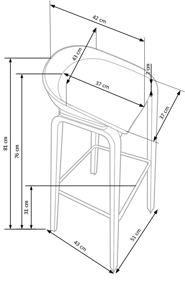 Scaun bar H-86 - H 81 cm Scaun bar H-86 - realizat din polipropilena, sezut tapitat cu stofa, structura din pacaj si metal. O piesa de mobilier moderna, ce reprezinta un detaliu sofisticat al incaperii tale! Dimensiuni: 43 42 81 76 cm Produsul nu este montat, este destinat pentru auto-asamblare. Instructiunile de montaj vin in colet.