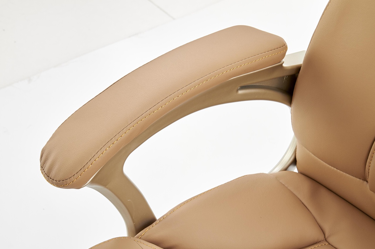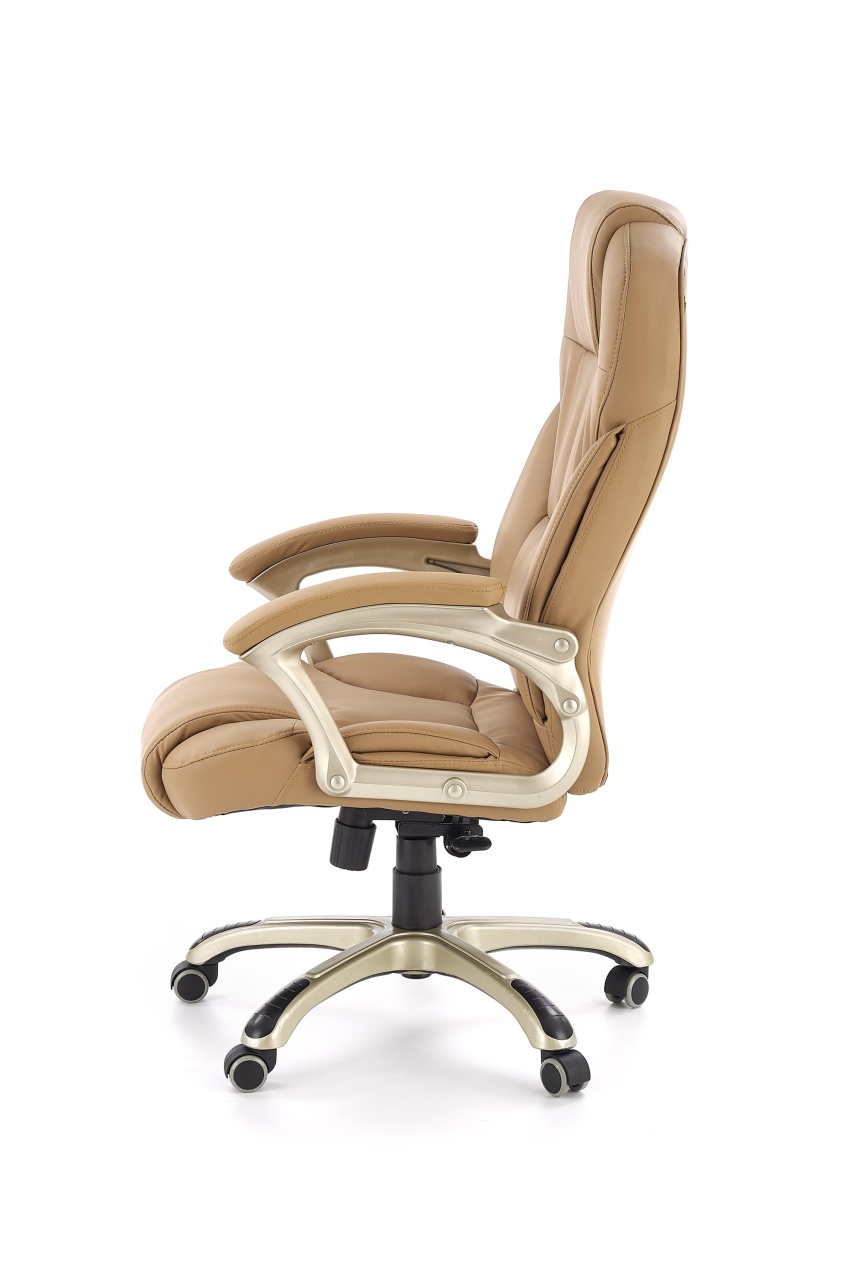 Scaun de birou Desmond bej Scaunul de birou Desmond are un design extrem de elegant si robust, excelent pentru munca de la birou sau de acasa. Tapiteria din piele ecologica este moale si confortabila pentru o utilizare placuta. Scaunul este echipat cu mecanism tilt care permite balansarea si reglarea fina a inaltimii, blocarea spatarului in pozitia verticala si rotirea in jurul propriei axe. Cotierele moi acoperite cu piele ecologica ofera o pozitie confortabila a mainilor si a trupului in timpul utilizarii. Baza solida formata din cinci brate este echipata cu roti acoperite de cauciuc care nu zgarie suprafetele. Dimensiuni: 67 70 112-119 48-55 Latime: 67 cm Adancime: 70 cm Inaltime totala: 112-119 cm Inaltime pana la sezut: 48-55 cm Produsul nu este montat. Instructiunile de montaj se gasesc in colet.