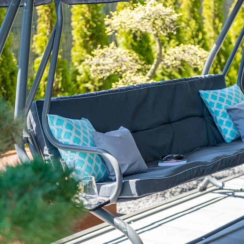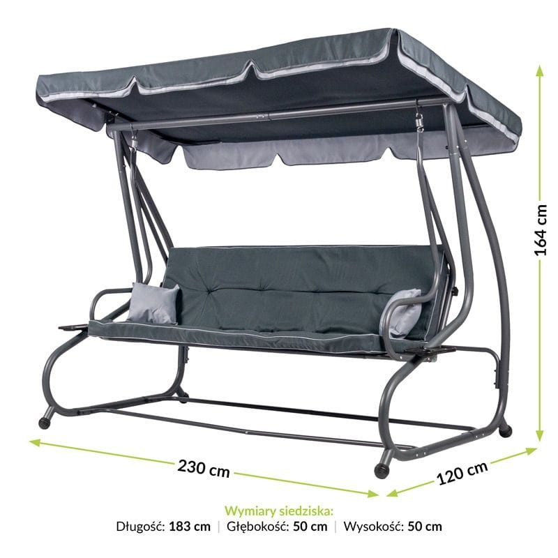 Balansoarul este perfect pentru a crea un spațiu confortabil de relaxare în aer liber, iar designul său simplu și modern îl face potrivit pentru diverse stiluri de decor în grădină sau pe terasă. Elegant și rafinat, această piesă de mobilier va înfrumuseța spațiul în care va fi amplasat. Dimensiuni balansoar: Lungime: 230 cm Lățime: 120 cm Înălțime totală: 164 cm Detalii tehnice: - oțel acoperit cu pulbere - materialul este rezistent la coroziune și condițiile meteorologice, astfel produsul va dura mai mult Culoare: gri Produsul nu este montat, acesta necesită asamblare. Instrucțiunile de montaj vin în colet.