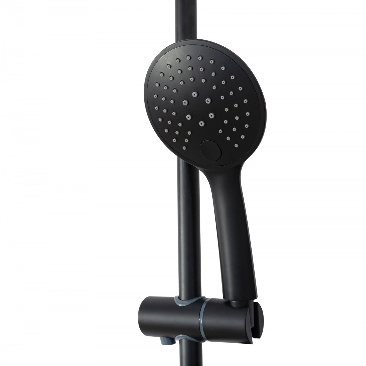 Bateria Vigo este ideală pentru o amenajare moderna si eleganta. Bateria este elegantă și atrăgătoare, conferind băii un aspect modern. Designul unic si modern a materialelor folosite garanteaza durabilitatea si fiabilitatea pentru mult timp. Dimensiuni Înălțime: 81-129,5 cm Diametrul dușului de ploaie: 25 cm Lungimea furtunului: 150 cm Detalii tehnice Metoda de instalare a bateriei: Pe perete Tip baterie: Baterie de dus Material: Alamă Culoare: Negru mat