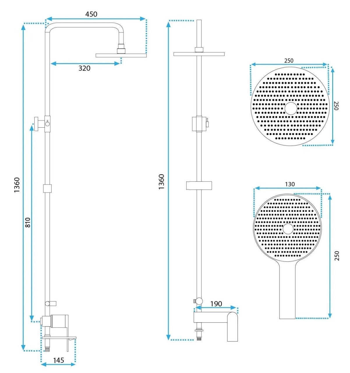 Setul de duș Veneta este conceput pentru confort și funcționalitate. Setul garantează siguranța și confortul maxim în utilizarea de zi cu zi. Designul unic și calitatea înaltă a materialelor utilizate garantează durabilitatea și fiabilitatea timp de mulți ani. Detalii tehnice: Culoare: Auriu periat Material: Alamă, ABS Metodă de montaj: Suprafaţă Înălțime max.: 1360 Pipa cadă: Da, pivotantă Reglare a presiunii Sistem Anti-Calc Distanța dintre racorduri: 150 Produsul este destinat auto-asamblării.