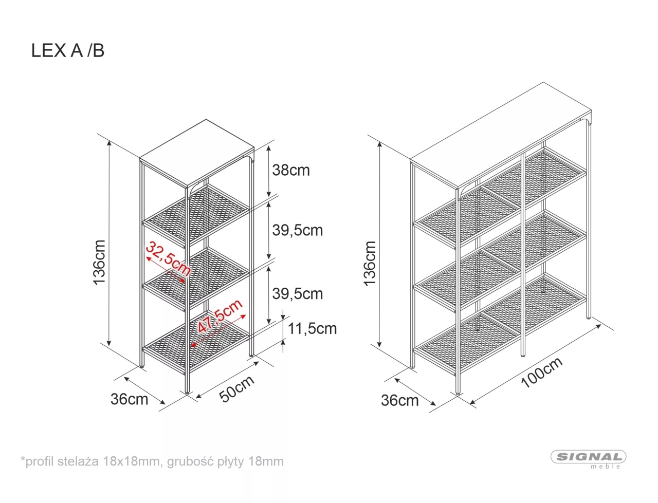 Raftul Lex este o piesă de mobilier modernă și funcțională, ideală pentru organizarea spațiilor din living, birou sau hol. Designul său simplu și elegant îl face ușor de integrat în diferite stiluri de amenajare, de la cele minimaliste până la cele industriale. Dimensiuni: 136 36 100 Detalii tehnice: rafturi: placă laminată + metal, cadru: metal, culoare: negru / stejar / negru mat Produsul nu este montat, este destinat pentru auto-asamblare. Instrucțiunile de montaj vin în colet.