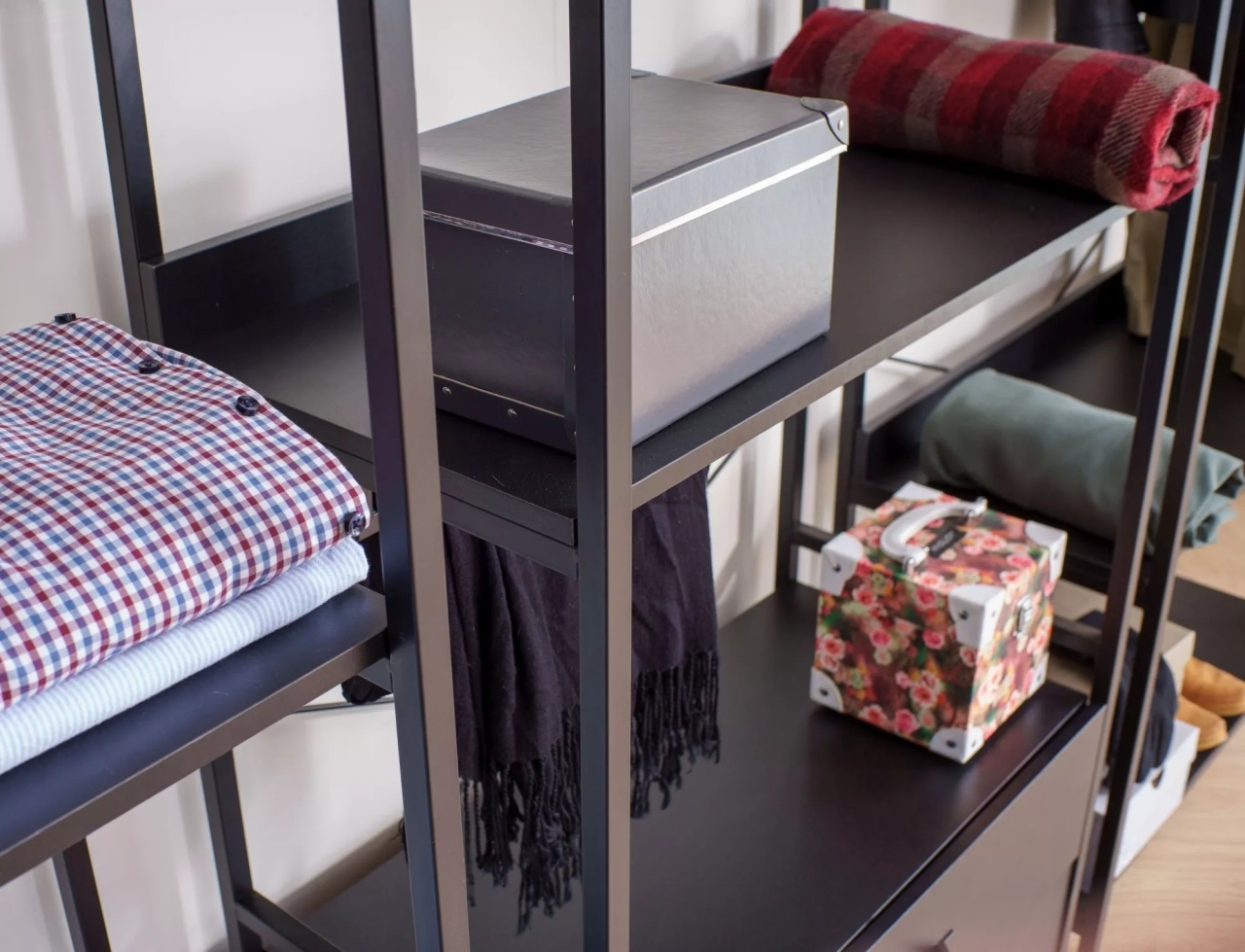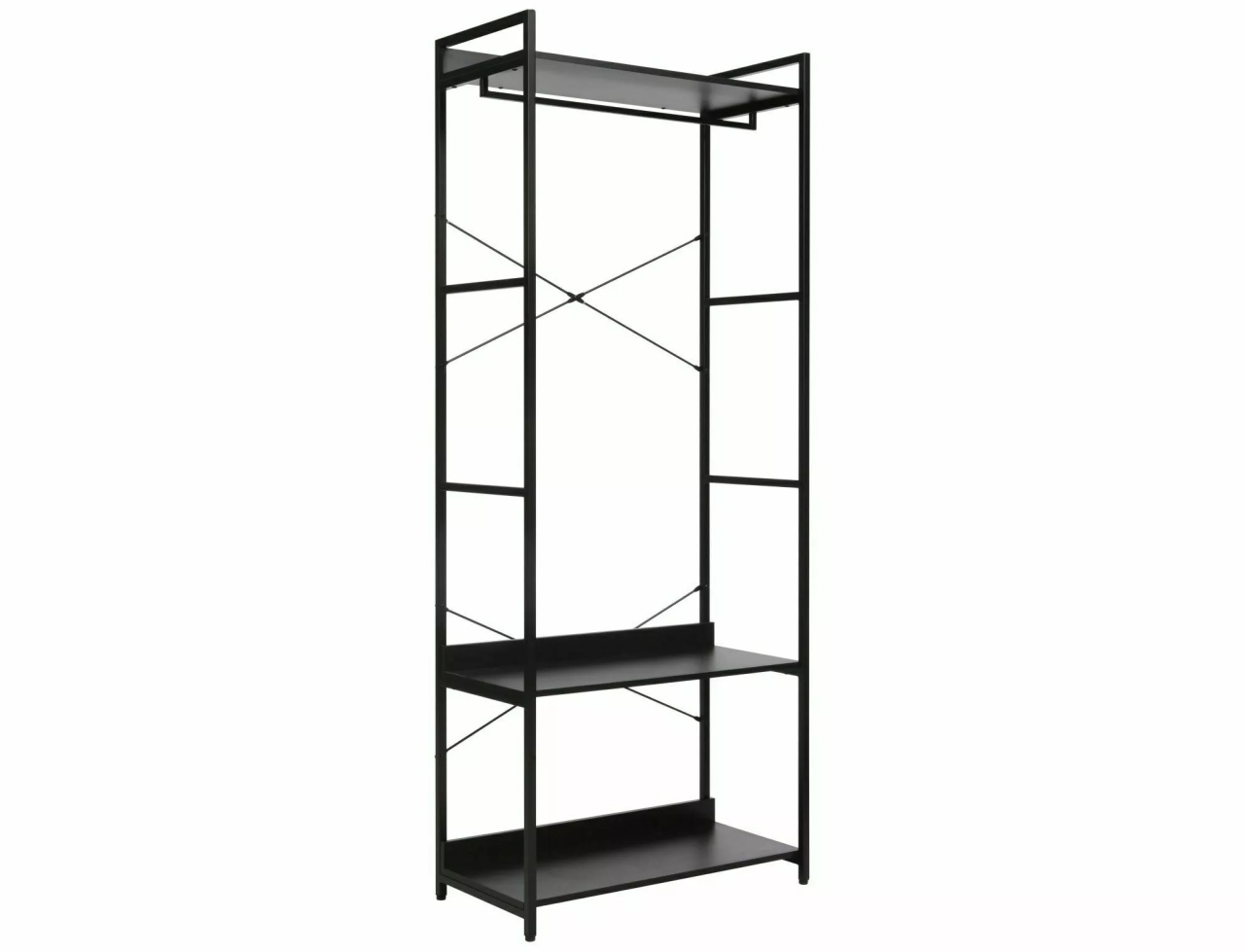Raftul Rin B negru este o piesă de mobilier modernă și funcțională, ideală pentru organizarea spațiilor din living, birou sau hol. Designul său simplu și elegant, în culoarea neagră, îl face ușor de integrat în diferite stiluri de amenajare, de la cele minimaliste până la cele industriale. Dimensiuni: 200 40 80 Detalii tehnice: rafturi: placă laminată, cadru: metal, culoare: negru/negru mat Produsul nu este montat, este destinat pentru auto-asamblare. Instrucțiunile de montaj vin în colet.